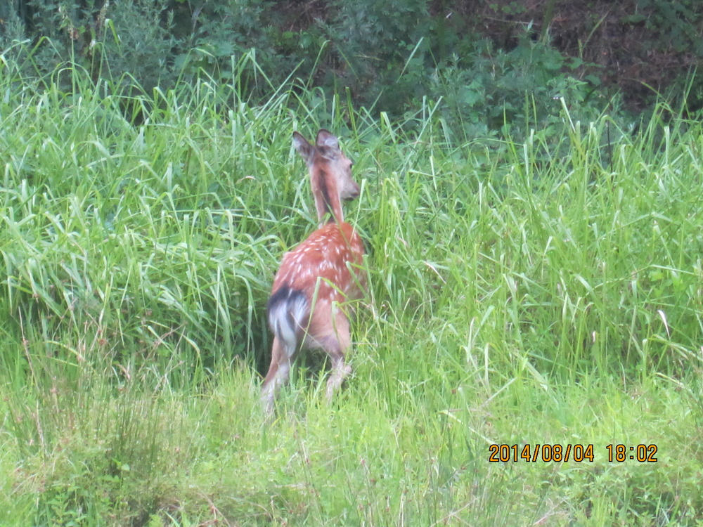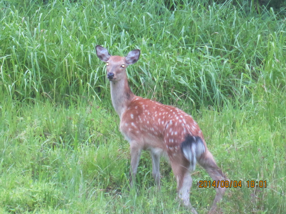 猛暑が厳しい夕方の八瀬地区でニホンジカと遭遇!体が少し小さめだったので小鹿ちゃんかな?地元住民さんによると、「ケガをしたのか、片足を引きずっている小鹿が時々出没する」とのこと。民家の庭の花を食べたり、ちょっぴりイタズラっ子だけど、地元では有名な可愛らしい小鹿ちゃんです。ちなみに夜は日本カモシカ親子が7~8頭の群れで出没するらしいです。