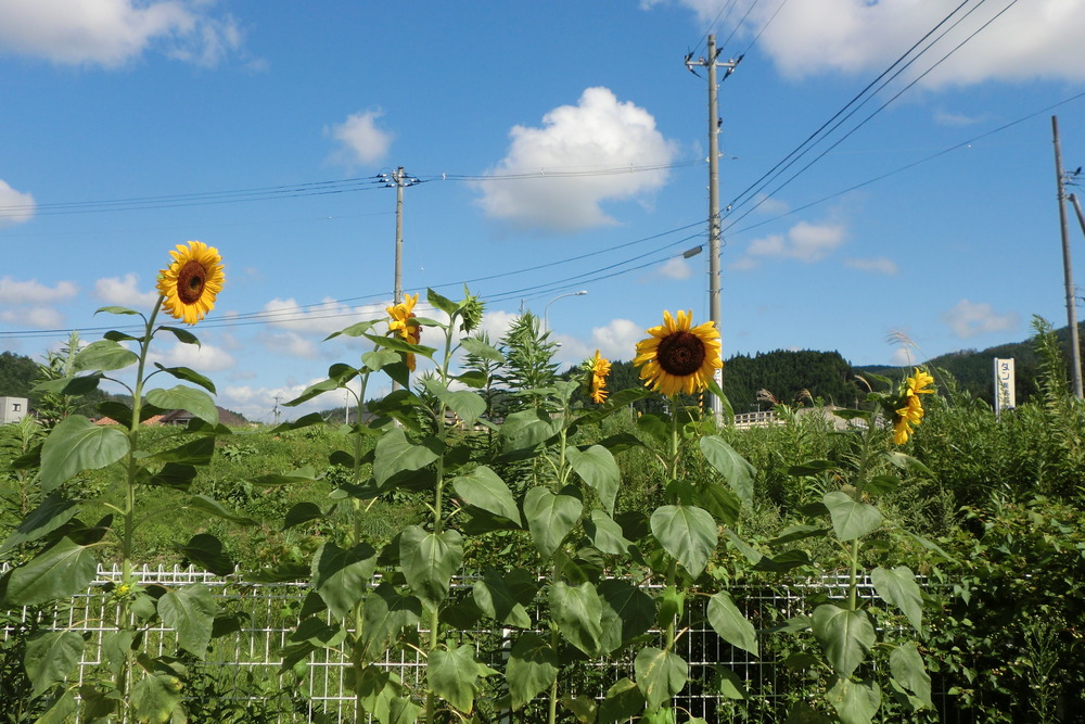 交流会&地域の様子印刷2014年09月01日 09時47分 投稿者:池田@ふくぼうひまわり撮影日:平成26年8月31日(月) 6月、社協敷地内の隅っこに蒔いたひまわりの種が開花しました。種蒔きの時期が遅めだった為か(?)他所の庭ではもう咲いているのに・・「まだだべか?」と首を長くして待っていたのです。咲いたひまわりは濃いめの黄色で元気なビタミンカラーでした。青空に顔を向け輝いている姿に、思わずニッコリしてしまいました。元気! ツイート 交流会&地域の様子へ戻る