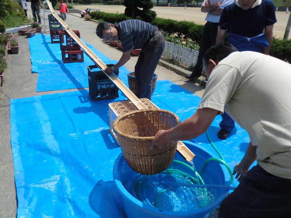 面瀬地区民生委員・児童委員協議会では面瀬学童保育” なかよしハウス ”で学童に通う子供達の為に「流ししそうめん」を行いました。すいか割りがあったり、そうめんと一緒にミニトマトやミニゼリーも一緒に流れて来たので、子供達は大喜び!隣接する小学校々庭で野球部中学生のお兄さん達も招待し、一緒に歓声を上げながらお腹いっぱいになるまで食べました。