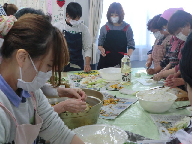 交流会&地域の様子印刷2014年10月12日 10時56分 投稿者:池田@ふくぼうKIプロジェクト秋の収穫祭 日時 2014年10月11日 場所 五右衛門ヶ原運動場住宅 対象 五右衛門ヶ原運動場住宅住民 五右衛門ヶ原運動場住宅にてKIプロジェクトによる秋の収穫祭が行われました。岐阜と気仙沼の秋の味覚を同時に楽しんでもらおうと昨年に引き続きの開催でした。岐阜特産の栗を使った栗ご飯のほか、気仙沼に水揚げされたサンマの塩焼き、すり身汁などボランティアさんと参加住民さんとで一緒に調理をし、楽しい昼食会となりました。「また、会いましょう!」との声があり皆で笑顔で記念写真を撮りました。 脂がのってますね!岐阜の五平餅みんな笑顔!!ツイート 交流会&地域の様子へ戻る