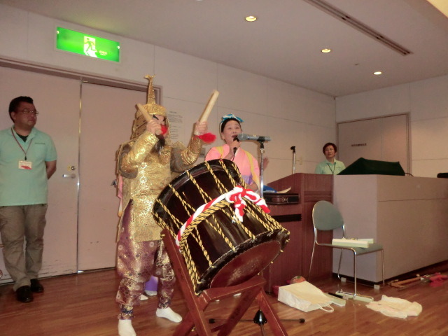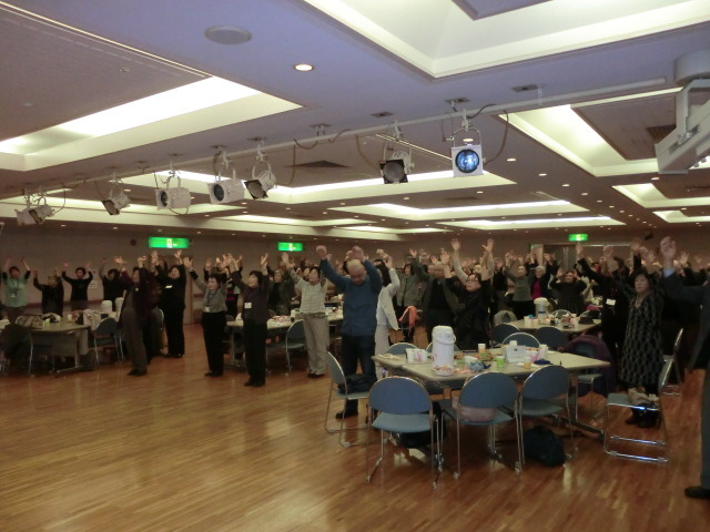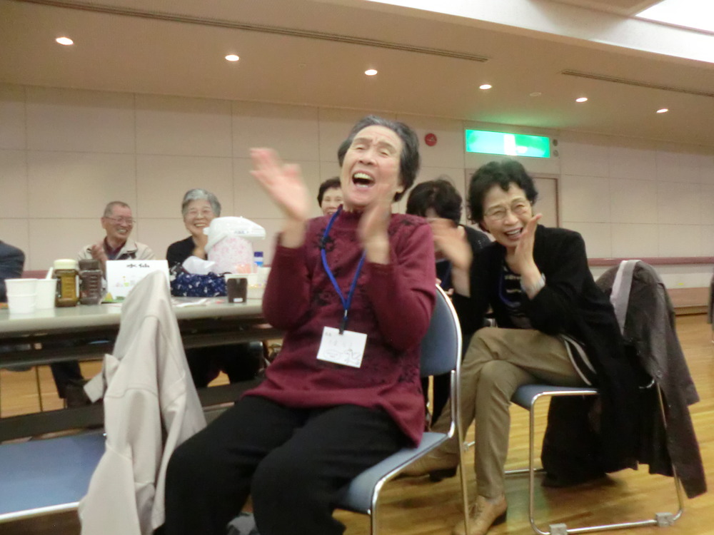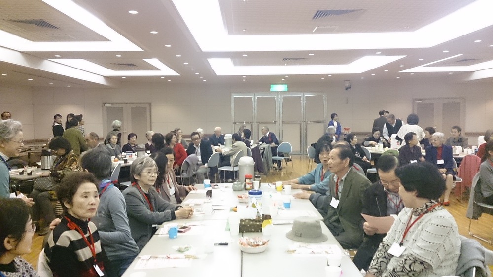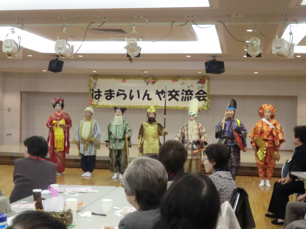 気仙沼市社会福祉協議会、齊藤典夫会長の挨拶で始まった仙台「はまらいんや交流会」。今回は、気仙沼唐桑小鯖地区の無形文化財となっている七福神舞を、保存会の方々に披露していただきましたが「なつかしい」、「初めて見た」、「すばらしいものを見せてもらった」と歓声があがりました。また、羽田神社の伝承行事である抜穂祭(ヌキホサイ)で頂戴してきた稲穂を、少しずつ分け水引きで結び、参加された方へお土産として手渡すことができました。一昨年から始まった会も4回目となり、その中で参加者同士の繋がりや広がりが出来たのか、79名の参加者の中で、初参加という方も7名いらっしゃいました。少しでも長くお話しできるようにスケジュールを組んだつもりでしたが、あっという間に閉会を迎えたような状態で、参加された方は名残惜しく感じていたようです。今回も地域の方々にご協力をいただきながら開催した交流会でしたが、皆様に喜び、楽しんでいただくことが出来、私達も本当にうれしく思っております。