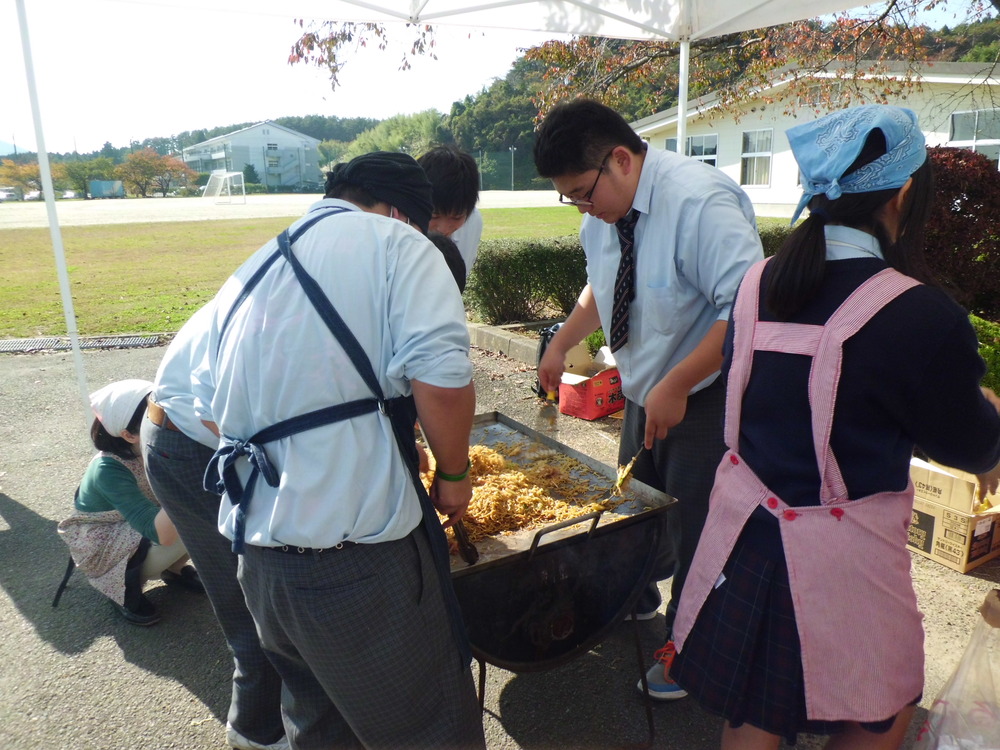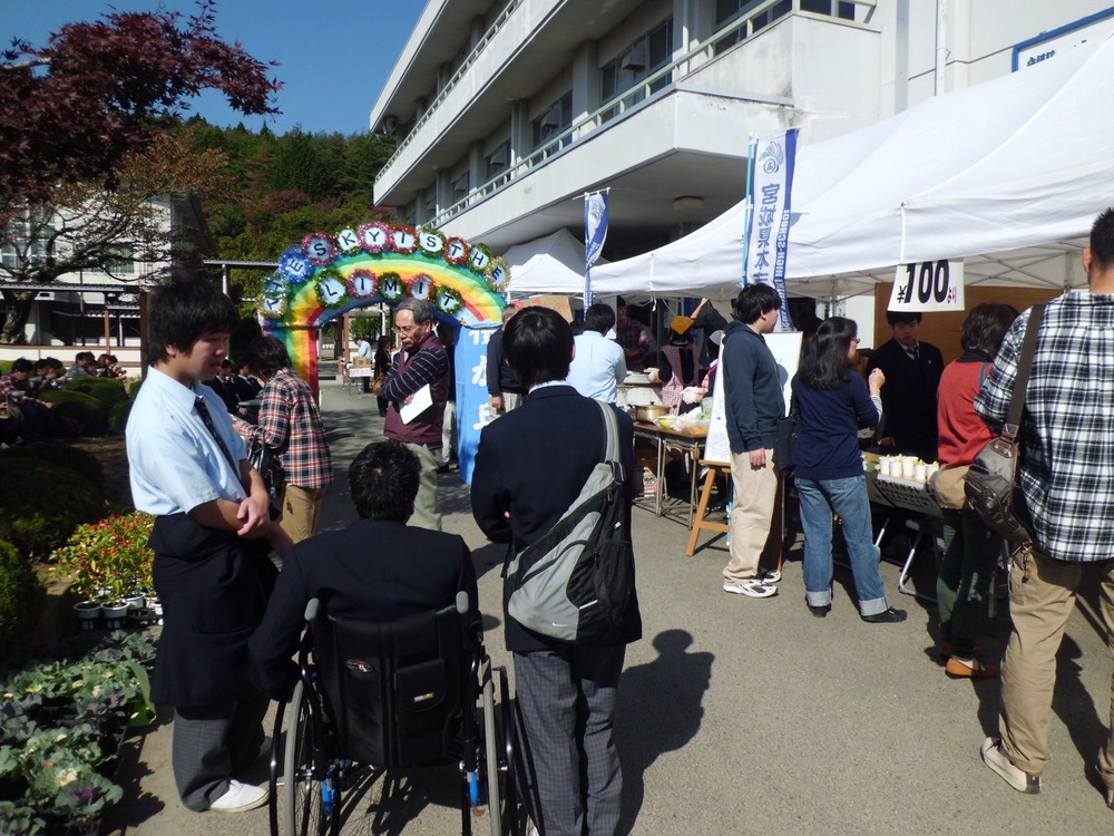 宮城県本吉響高等学校の文化祭「桜が丘祭」が開催されました。農業クラブの生徒達が田植えから稲刈りまで手作業で作った「ひびき米」は即完売!!丹精込めて育てた野菜やシクラメン等も大人気でした。クラス毎の出店や部活動の展示があり、保護者だけでなく地域の方も楽しみにしている文化祭では、収穫した野菜を使ったピザや豚汁を、秋晴れのもと皆笑顔で食べていました。先生方や生徒さん達が大きな声で挨拶し、お客さんが購入した重い荷物を運んでくれる姿がとても印象的でした。