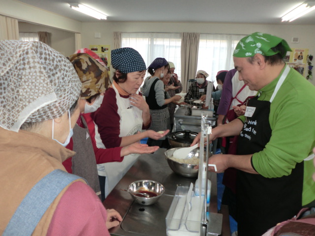 本日、味の素の料理教室「簡単ヘルシー料理教室」が開催されました。主婦は家事がお手の物と思いきや、男性の見事な包丁さばきに感嘆の声!!今回の交流会は若者世帯から高齢者世帯、派遣職員の参加が見られ、その中で世代間交流が生まれていました。