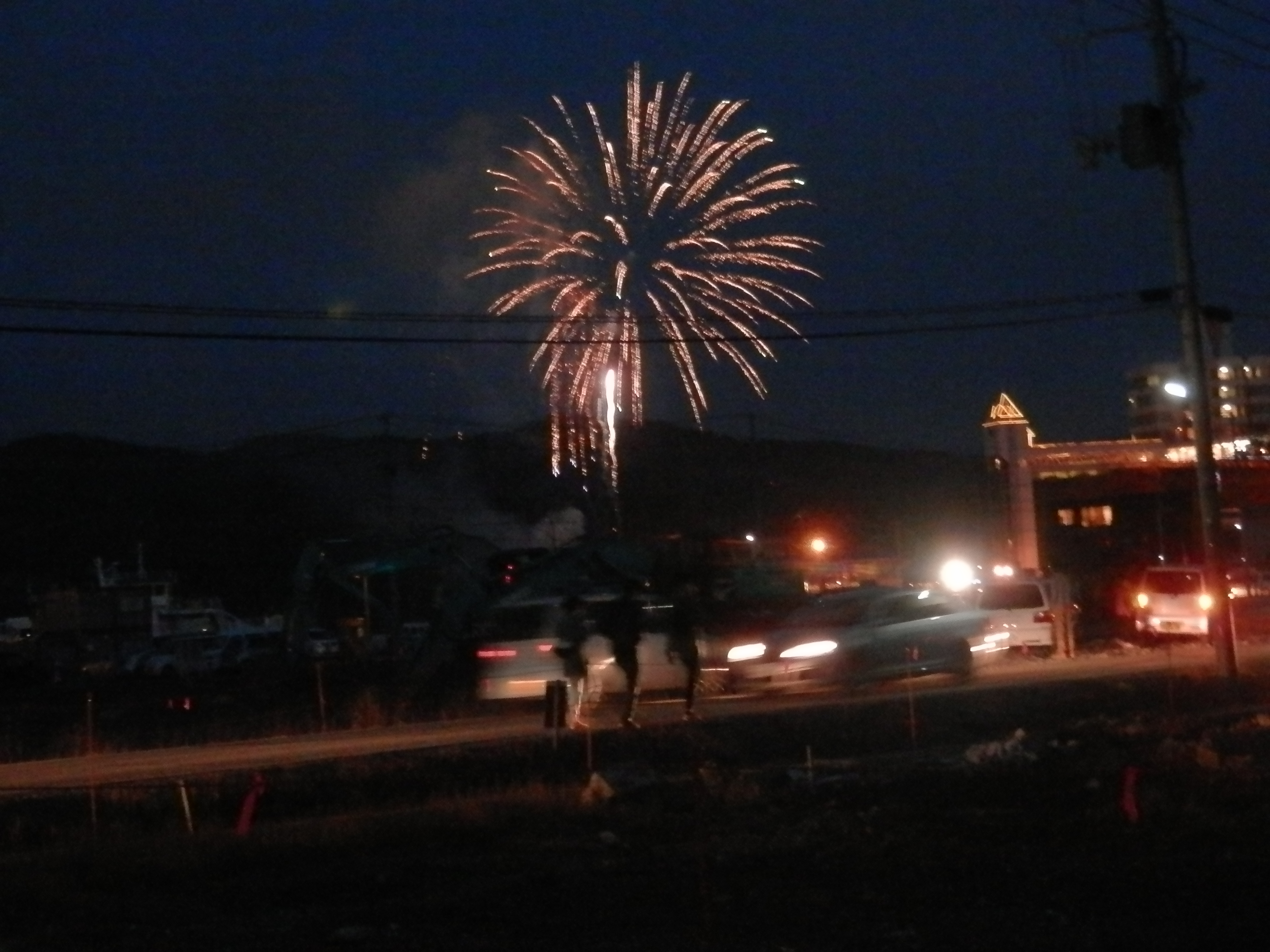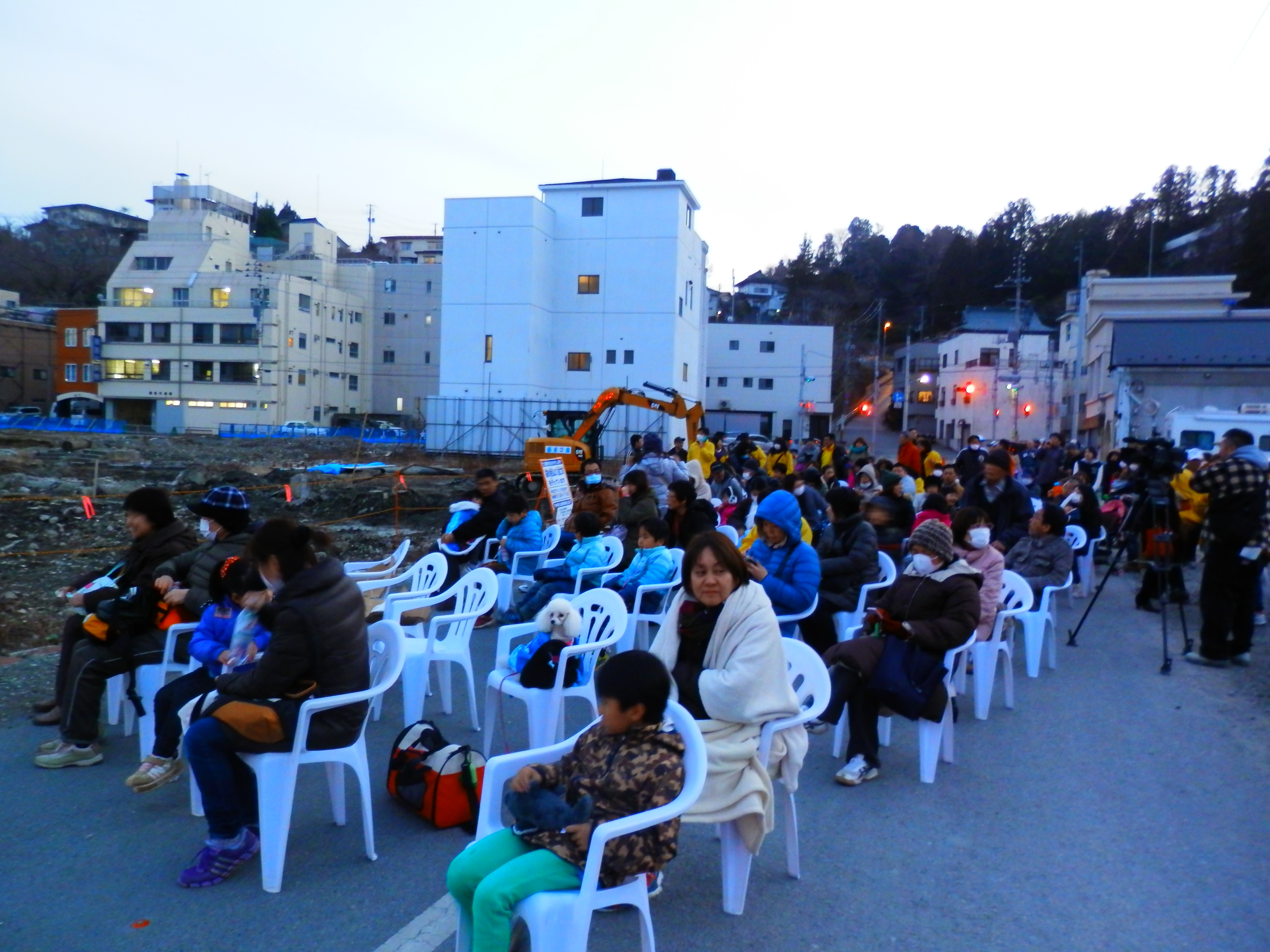 「栃木めっけの会」様の協力による「花火で気仙沼を元気に!」が開催され、七十七銀行交差点から紫さん入口までの車道に椅子を並べて春の夜空に揚がる花火を楽しみました。過去2回はいずれも強風のため順延となりましたが、今年は気仙沼中学校校庭から内湾に場所を移しての開催、6時10分から500発の花火が内湾の空を彩りました。過去2回「栃木めっけの会」のメンバーと協力者が当日バス2台で駆け付けた「めっけの会」のメンバーと協力者は待望の花火を観て「毎年ありがとう♪」の声に送られ帰路につきました。