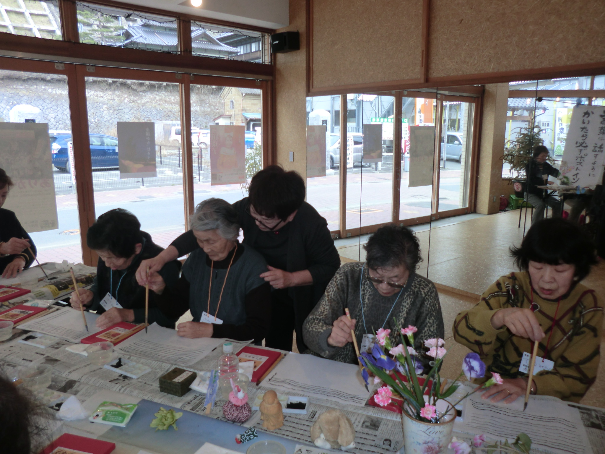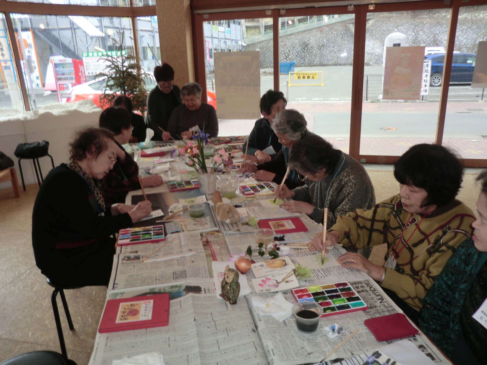 第5回絵手紙教室が、紫市場・南町cadocco で開催されました。「ゆっくり!ゆ~っくり引いて下さい」「カタツムリが歩いている感じです」「指先を使います」と先生がテーブルを回り、皆に声をかけながら線引きの練習を行いました。線引きの練習後は、画材を選び自分のペースで楽しんで描いていました。先生が自宅近くの土手から採ってきた「バッケ」が人気ナンバーワン!!やさしい色の絵てがみが春の空気を運んできました。