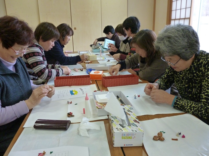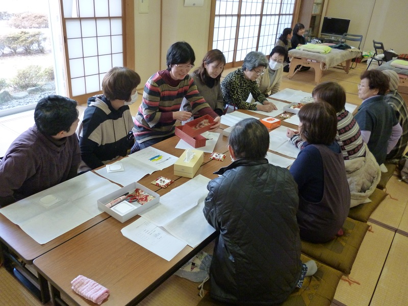 交流会&地域の様子印刷2015年05月13日 13時23分 投稿者:気仙沼市社会福祉協議会唐桑地区交流会「足も頭もリフレッシュ」 日時平成27年3月12日(木) 場所 保健福祉センター「燦さん館」和室 対象 主に、唐桑地区のみなし仮設にお住まいの方、自宅(自立再建)にお住まいの方 気仙沼市では通称「心カフェ」を定期的に開催していますが、この日は「心カフェ」継続支援事業として、身体と頭をリフレッシュして頂く交流会を開催しました。順番に足裏マッサージでリラックスしながら、椿のブローチとミニ額縁作りを体験しました。同じ材料を使っていても、作り方によってガラリと雰囲気が変わります。楽しみながら、互いに教え合いながら、それぞれ個性の溢れる素敵な作品が出来上がりました。 ツイート 交流会&地域の様子へ戻る
