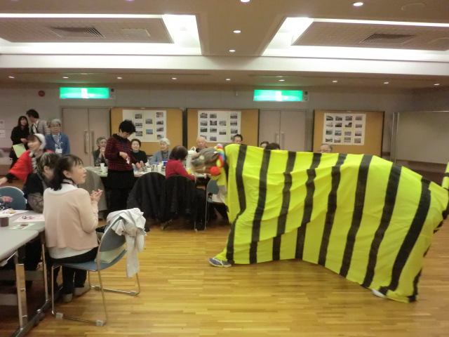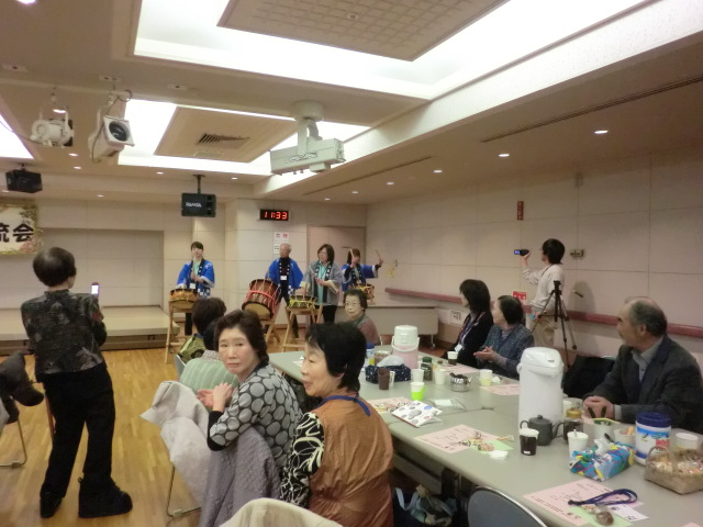 今回は気仙沼を感じていただきたいことと、仙台での新たな生活を応援したいとの想いから、気仙沼では馴染みのある「虎舞」と、お祭には欠かせない太鼓の演奏を行いました。また、昼食には気仙沼の業者さんの仙台店より届けて頂いたお弁当を堪能して頂きました。回を重ねる毎に知り合いの輪が広がり、参加者同士の交流も増えてきている様子でした。