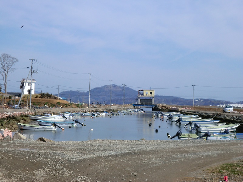 A→波路上漁港付近の水門。漁港と防潮堤復旧事業が計画されています。