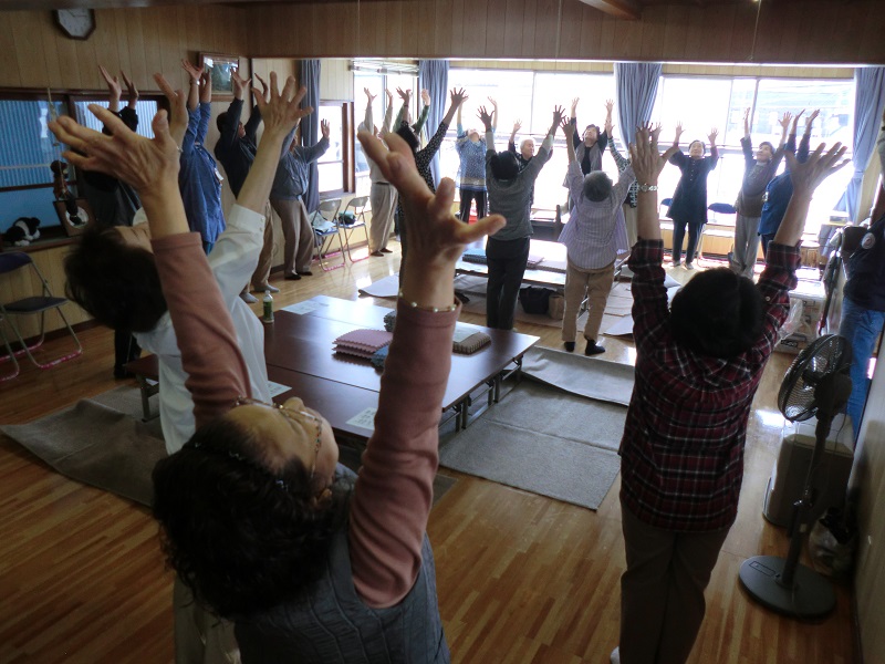 | グーッと背伸びし健康体操! | みんなで仲良く準備 |