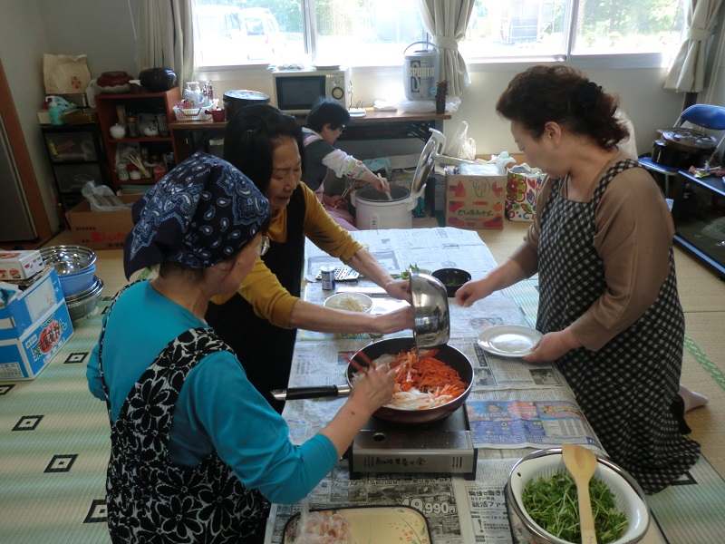 みんなで料理の下準備をしたり、各家庭の味、お味噌汁が「甘いか?しょっぱいか?」ということで飲み比べをしたり、談笑しながらにぎやかな料理教室になりました。