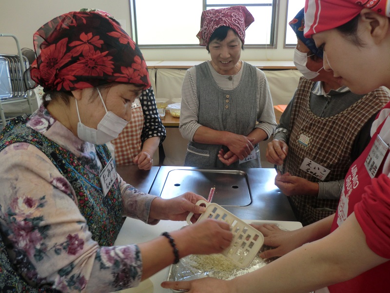 皆さん、4台の調理台に分かれ、交代しながら楽しそうに調理をされていました。