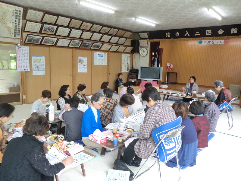 滝の入2区自治会長さんから社協ボランティアセンターに”いたわり支え合いについての講話と健康体操”の依頼があり参加して来ました。復興支援コーディネーターが”地域福祉活動計画”について講話を始めると、住民の方は興味深く聞き入っている様子でした。その後は”いけいけお茶っこ体操”で体をほぐしお食事会へと続きました。自主防災に力を入れている自治会ですが「今年は福祉に力を入れます!」と会長さんが話されていました。