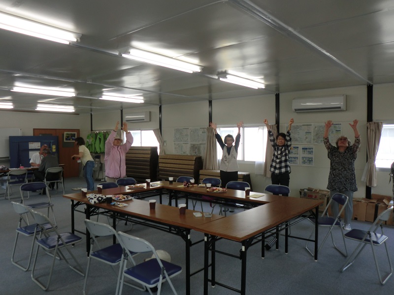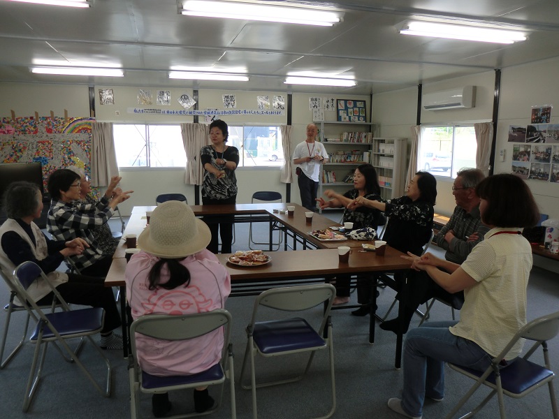 気仙沼地区サポートセンターでは、仮設住民の方を対象に健康相談を開きました。生活支援相談員は体を動かす事が少ないという参加者の方の声を受けて「いけいけお茶っこ体操」とトランプゲームや指遊びを一緒に行い,大笑いした場面もありました。