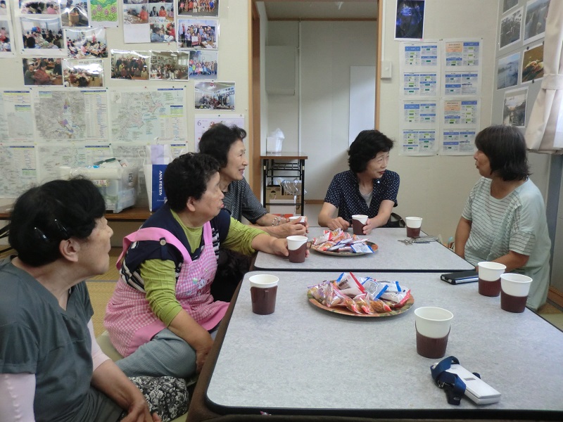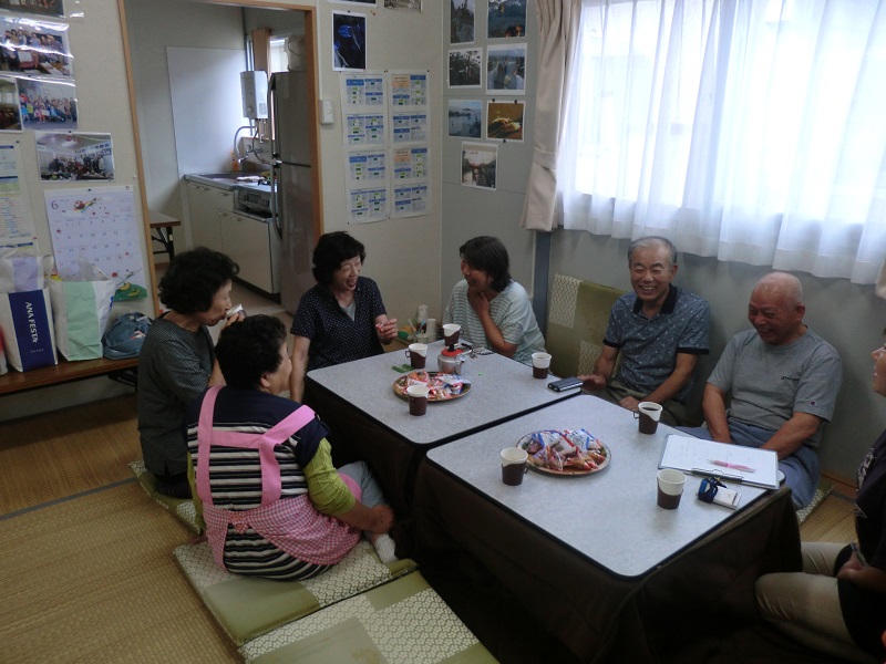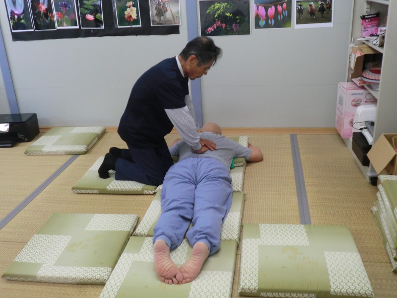 開始時間前から住民さんが集まって来たので、予定時間を繰り上げて指圧が始まりました。他の人は、皆でお茶を飲みながら順番待ちです。