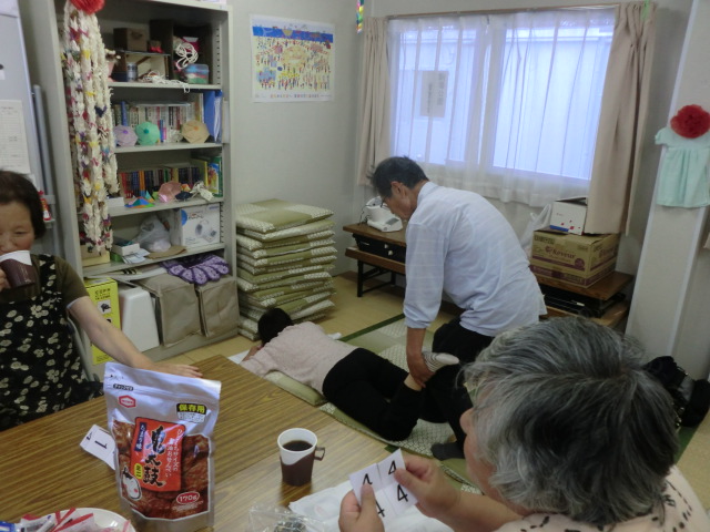 今回、指圧をして下さったボランティアさんは「長期に亘る仮設暮らしの疲れた体をリフレッシュして頂ければ」と兵庫県からはるばる来てくださいました。ありがとうございます。