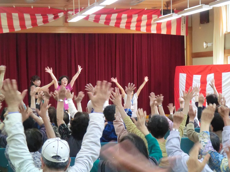 | 会の始めに威勢をつけて | お茶っこ体操でグーンと背伸びしましょ |