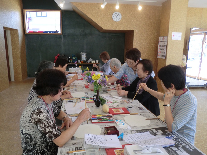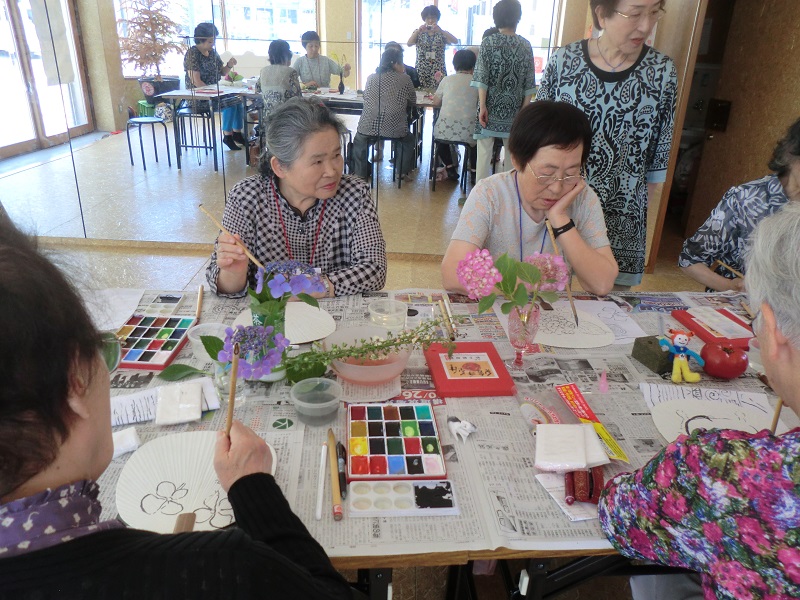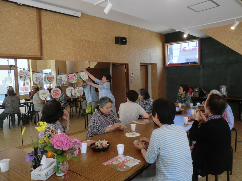 完成したうちわを手に談笑し、先生の感想を聞いた後『9月も楽しみにしてっから』と皆で声をかけ合いながら帰途につきました。