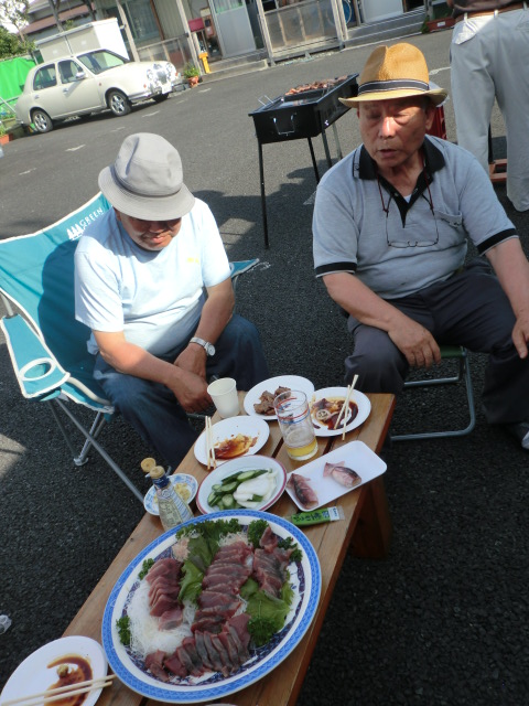 夏祭りでは、住民さんがさばいた鰹の刺身やあら汁、焼肉などが振舞われ、参加された方は談笑しながらおいしい料理に舌鼓を打っていました。
