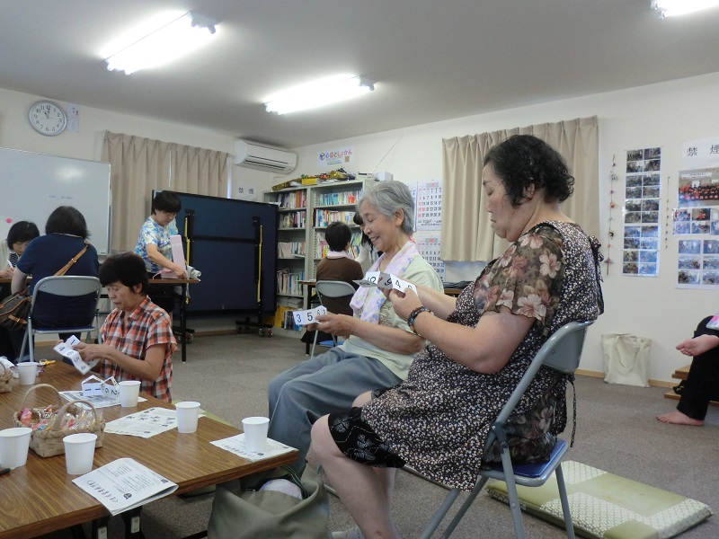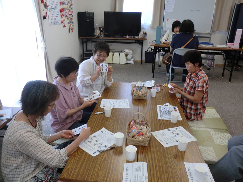 生活習慣病予防・運動と食生活・心のケアを目的とした健康相談です。相談を待つ間に、お茶呑みをしながら数字合わせで脳トレを行いました。夢中になって数字合わせをしていた参加者の方からは「かえって、血圧が上てしまうや!」と冗談も出るほど、楽しんでいただきました。