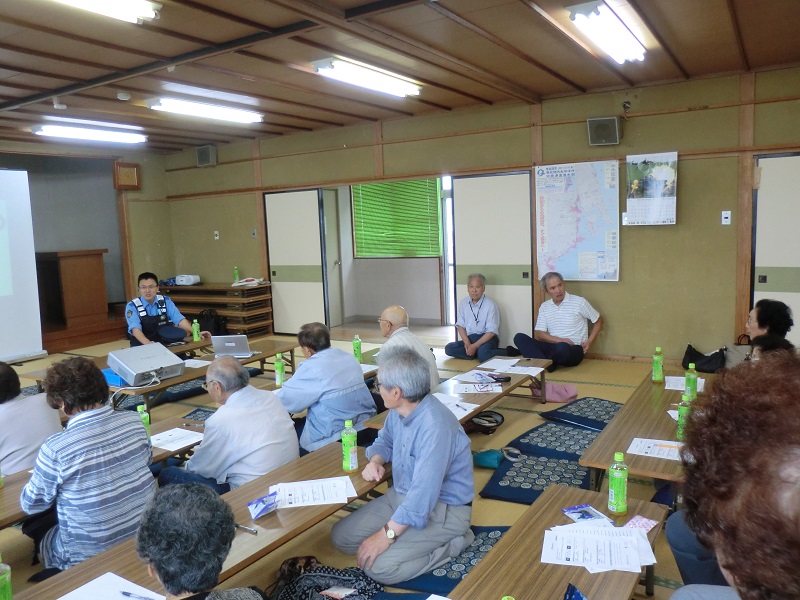 眼の病気のことや眼に良い食品について学び、例としてブルーベーリーや夏野菜のかぼちゃが良いと教えられると、参加された方の中から「かぼちゃだったらいつでも食べられるね」との声が上がっていました。その後は階上駐在所の警察官より詐欺についての注意喚起と防犯ベルの必要性の講話を頂きました。