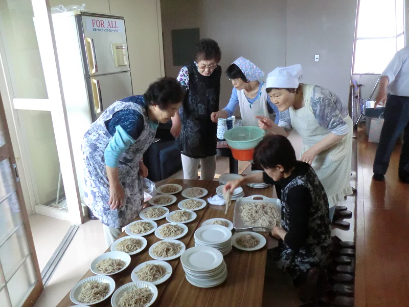 最後はシニア部員お手製の手打ちそばで昼食となりました。そばだけでなくめんつゆも手作りで、皆さん「おいしい、おいしい」とたくさん召し上がられていました。