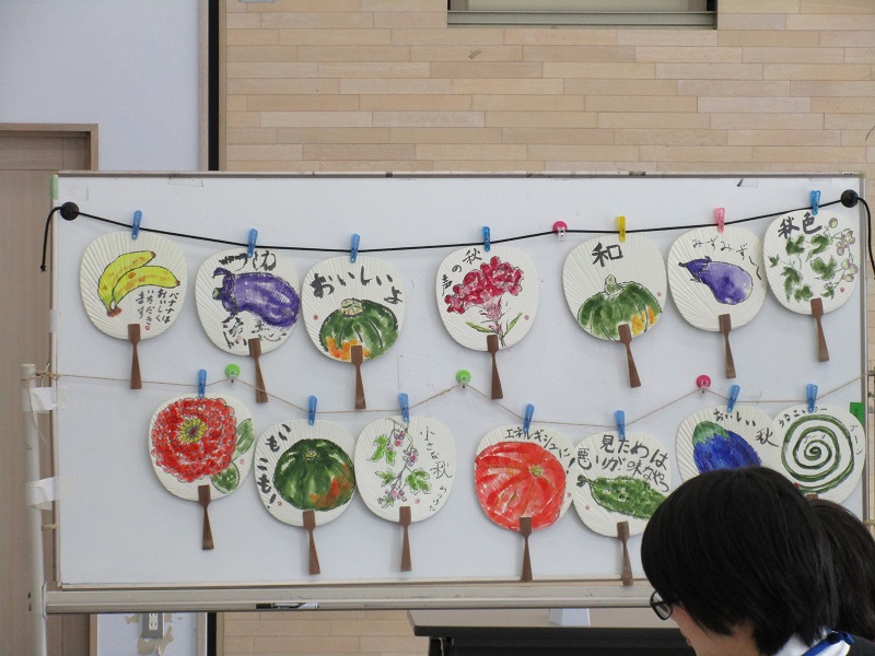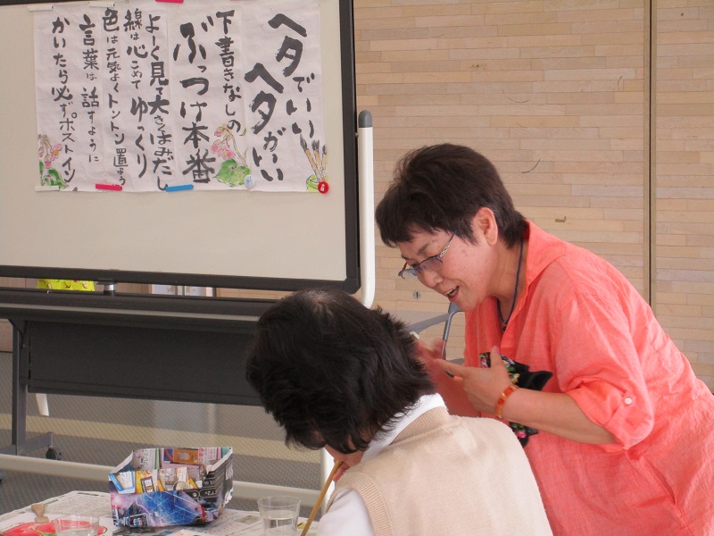 講師の先生ご指導の下、皆さんの筆を持つ手が緊張し、集中力が高まります。うちわに描く絵は太陽の光をたくさん浴び、みずみずしく実った夏野菜、秋を待つ鶏頭の花、そして夏を感じる蚊取り線香!