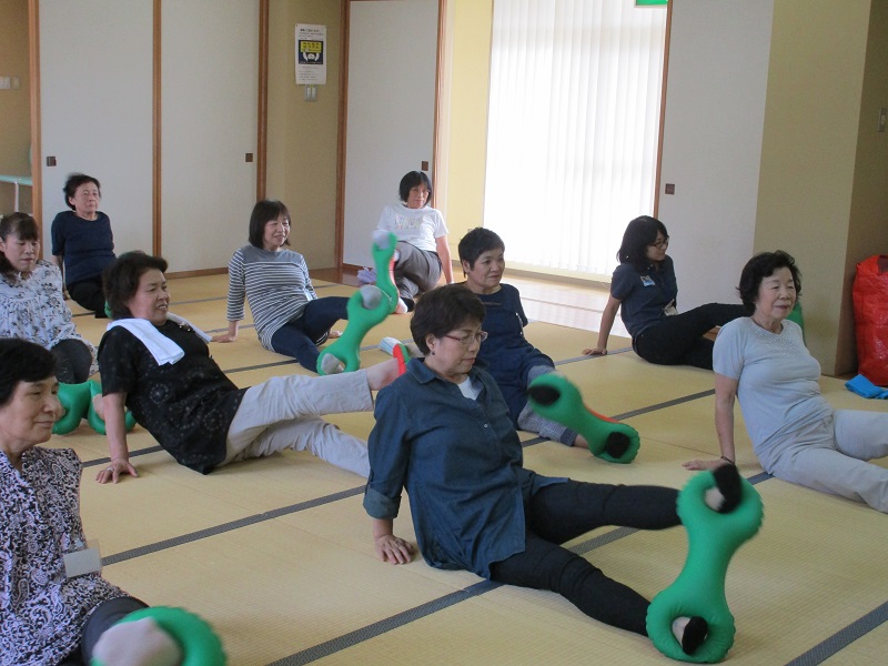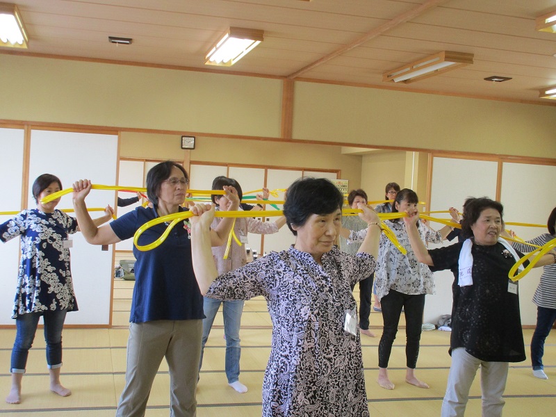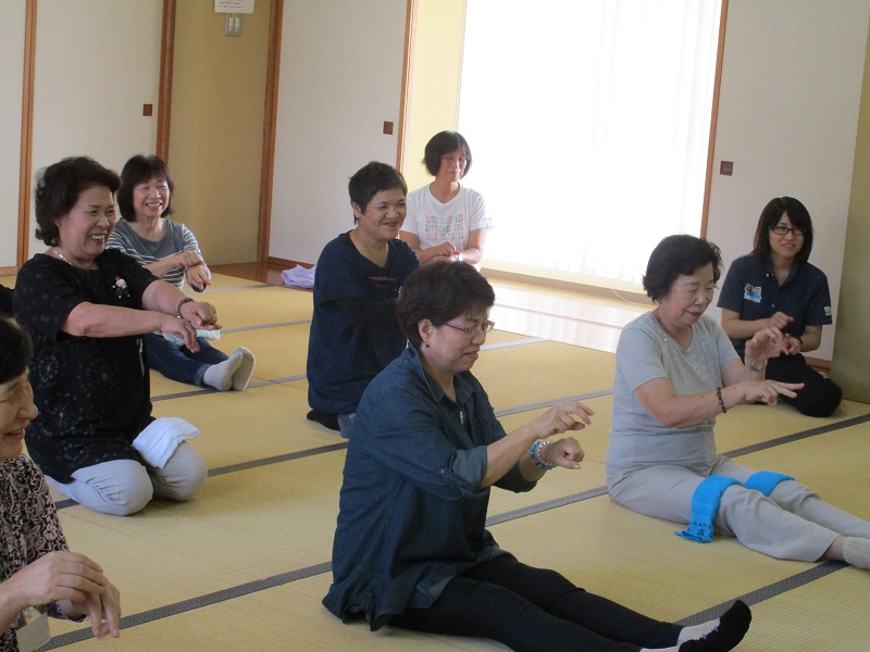 講師の方言を交えたおしゃべりも楽しく、皆で笑いながら、リラックスした雰囲気で歌謡曲や童謡に合わせてリズミカルに体を動かしました。
