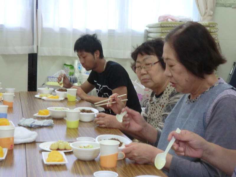 気仙沼栄養士会主催の料理教室を赤岩老松北・南、舘森北・南の4つの仮設住宅合同で開催しました。