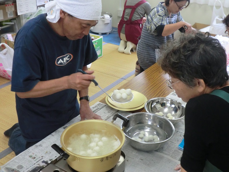 皆で団子を丸めたり、みたらしのたれを作ったりし、一日早いお月見の気分を味わいました。