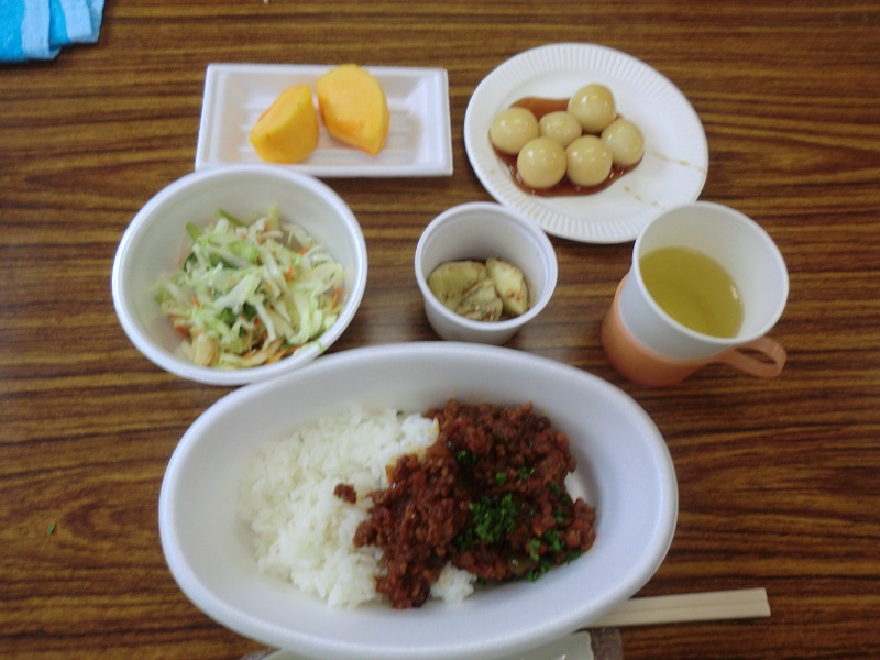メニューはドライカレーにサラダ、それから次の日が十五夜ということもあり、デザートにはみたらし団子を作りました。
