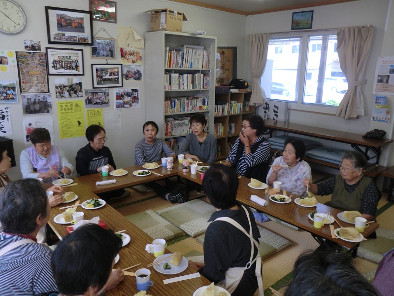 切通住宅の集会所にて、地域のボランティアクラブである新月コスモス会の協力をいただいて「お茶っこ会」を開きました。