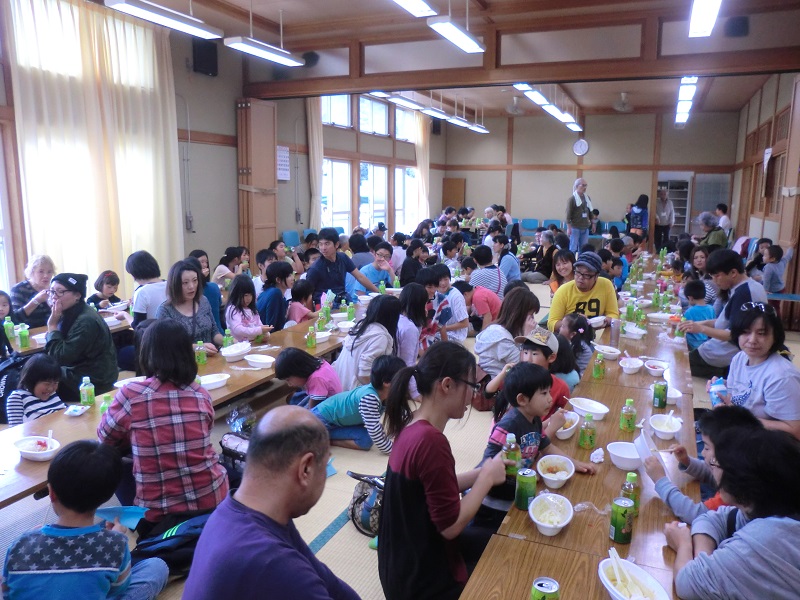 | 応援団は見学 | 老若男女が集まっての食事会 |