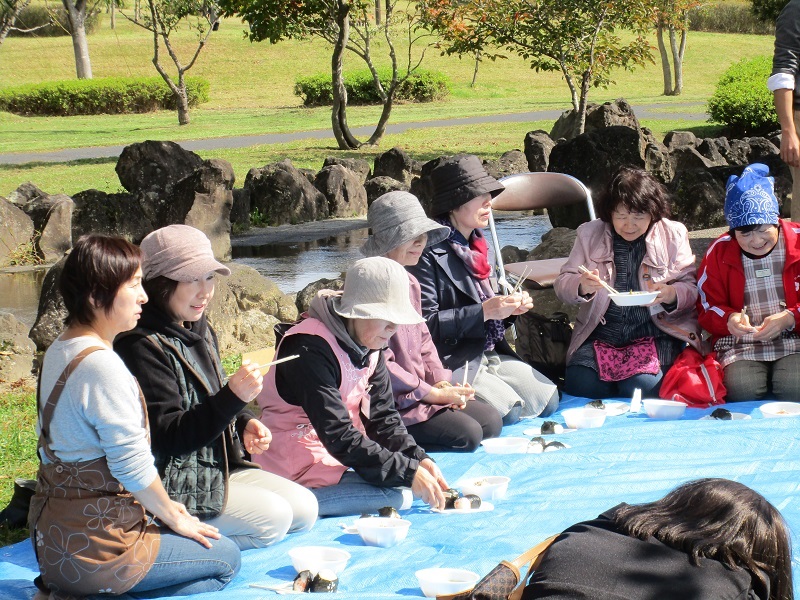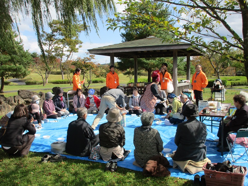一関市社会福祉協議会で毎月行われている「お茶っこ交流会」。今回は一関遊水地記念緑地公園を会場に『いものこ会(※)』を行いました。多少風はありましたが、とても暖かく天気の良い日でした。