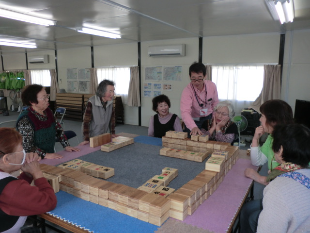 みなさんの健康相談が終わった後にはコミュニケーション麻雀を行いました。コミュニケーション麻雀は個人個人で競い合うのではなく、2~3人のチームを作って仲間と相談しながら遊ぶゲームです。皆さん、仲間と知恵を出し合いながら和気藹々とゲームに興じていました。