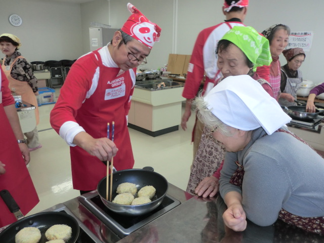 気仙沼市の中央地区の住民さんを対象に、味の素の「健康・栄養セミナー」を開催しました。中央地区から会場の気仙沼中央公民館までは少し距離が離れていますので、送迎にはボランティアさんの協力をいただきました。