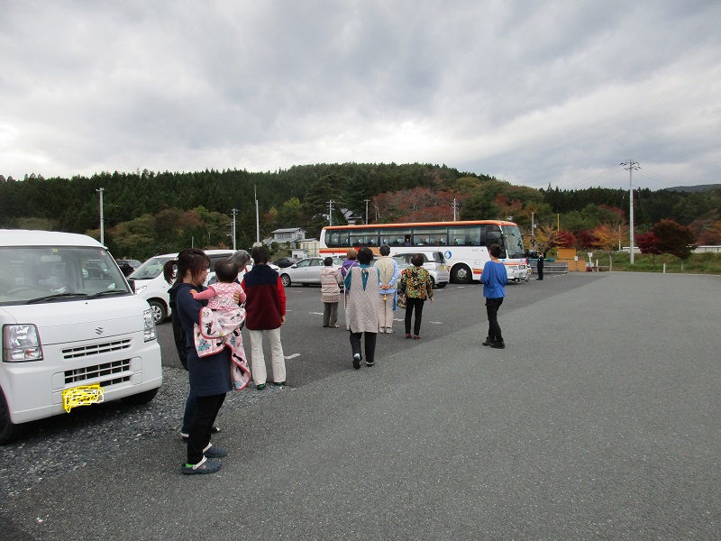 生徒さんがバスで帰る時、住民十数名が「お見送り隊」を結成し手を振り見送りました。