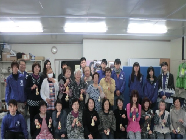 絵や文字を描いたひょうたんは生徒さんがニスを塗り、乾く間には住民さんと生徒さんが談笑し赤穂や気仙沼のことを教え合う姿が見られました。
