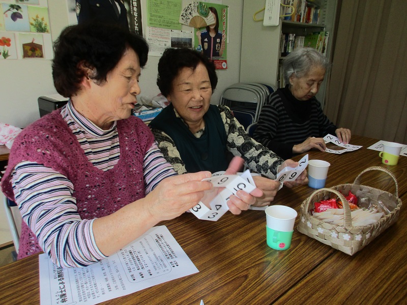 中井小学校住宅にてお茶会を行いました。いけ!いけ!お茶っこ体操や輪投げで程よく体を動かした後、数字合わせで脳トレを行い、参加者5名で楽しい時間を過ごすことができました。その後のお茶会では、皆さんおしゃべりが弾み、あっという間に時間が過ぎリフレッシュできた交流会でした。
