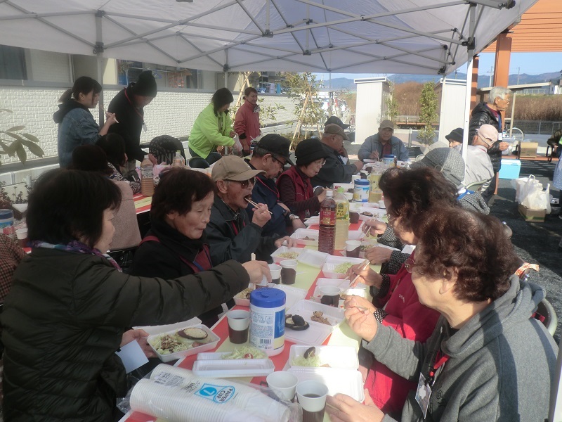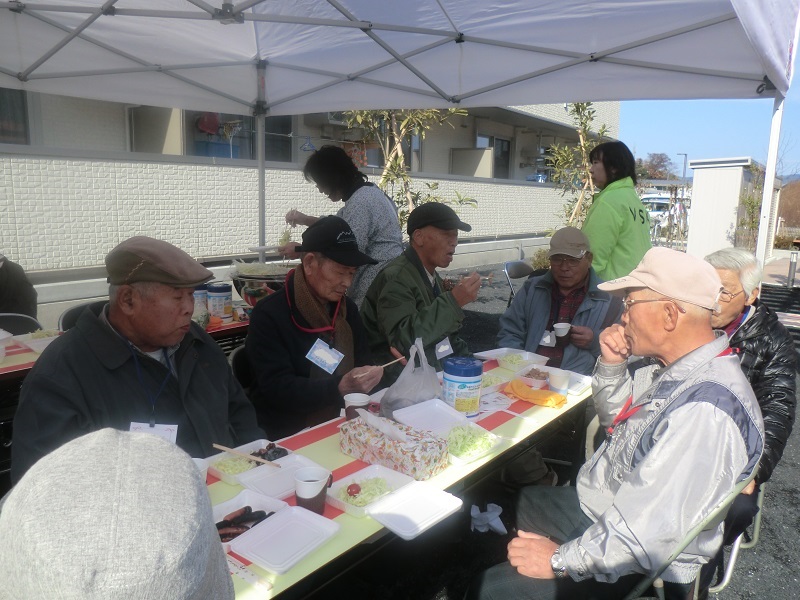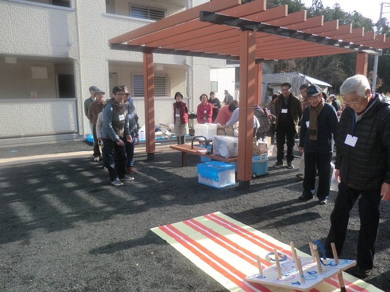 赤岩五駄鱈公営住宅の中庭で赤岩五駄鱈友好会(自治会)主催の「みんなでバーベキューを楽しみましょう」が開催されました。屋外での交流会の為、当日の天候がとても気になっていたのですが・・・なんと!その日は青空が広がり、風も無く暖かな日差しの下、おいしい焼き肉をいただきました。地元産の新鮮な野菜も炭火で焼いてホックホク!でした。公営住宅に入居した方々のお顔合せと地域の方とのお顔合せが出来るように、そして交流を持って頂けるようにとバーベキューの他にビンゴゲームや輪投げも用意しました。参加者の方々に喜んでいただけて幸いでした。