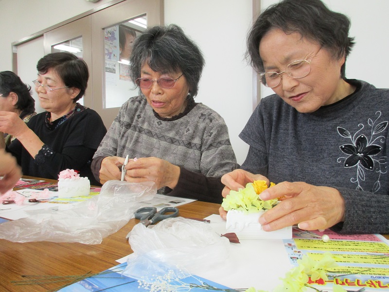 面瀬公民館で花泉観光開発㈱のご協力を頂き、プリザーブドフラワー作りに挑戦しました。
