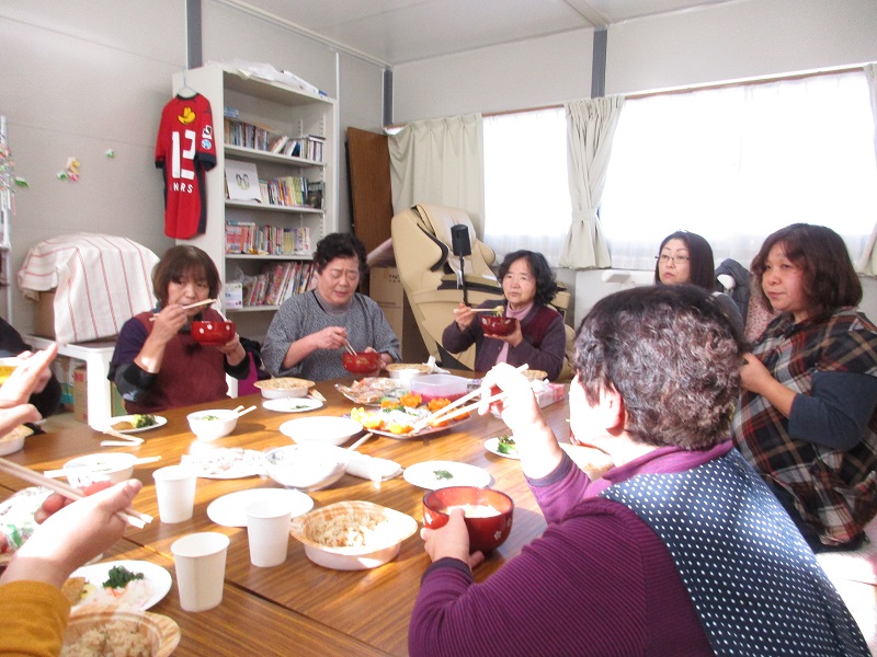津谷小学校住宅では仮設住宅からの転居が進む中、退居する方を交え「新年会」を開催しました。