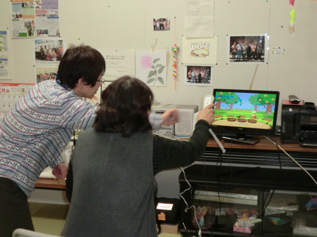 今回はゲーム機を使ってボーリングとモグラ叩きを行い、その後、お茶を飲みながら数字合わせパズルを行いました。