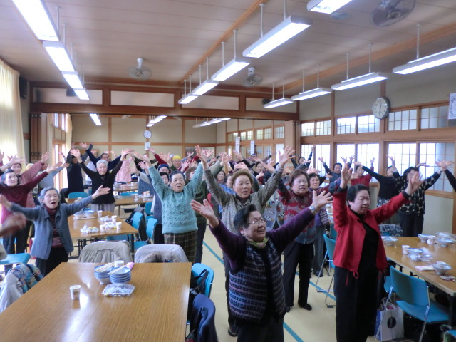 食事が終わった後は全員でお茶っこ体操で体を動かし、楽しい時間を過ごしました。食事の後の片付けも男性陣が行い、参加者は昨年と同じ67名と大盛況に終わりました。