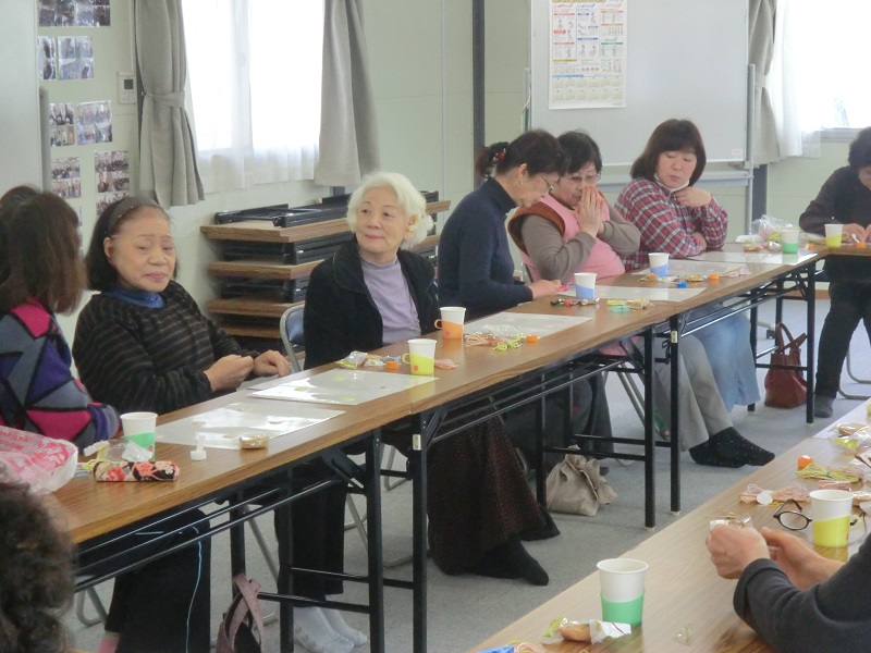 気仙沼公園住宅の住民さんにより結成された高齢者サロンにて「ふくろうストラップ作り」を行いました。