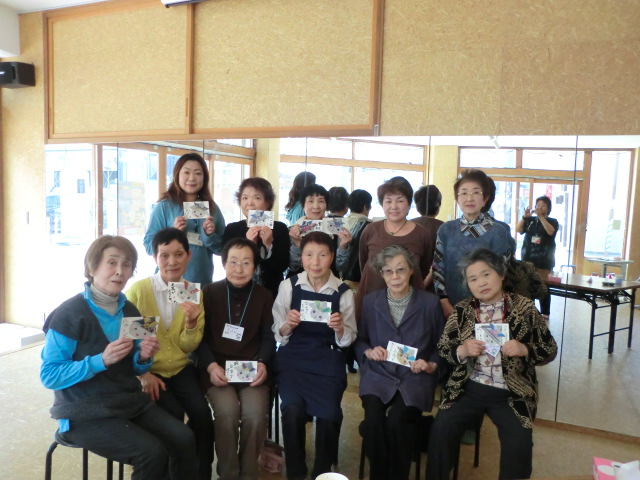 紙をちぎっている間は「し~ん・・・」と静まり返り、皆さん黙々と真剣そのもの!日焼けした子、腕白っ子、兜がちょっと大きめの子・・・お孫さんの顔を思いうかべながら製作したのでしょう。それぞれ表情の違った可愛らしい絵はがきに言葉を添え完成!!