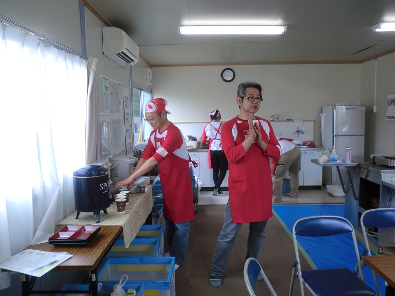 | 皆さん役割分担して調理開始です | 大きな声で (*^∀^*) <いっただきまーす!! |