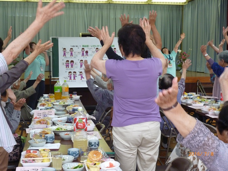| 佐々木徳朗さんによる講演 | みんなで、お茶っこ体操 |