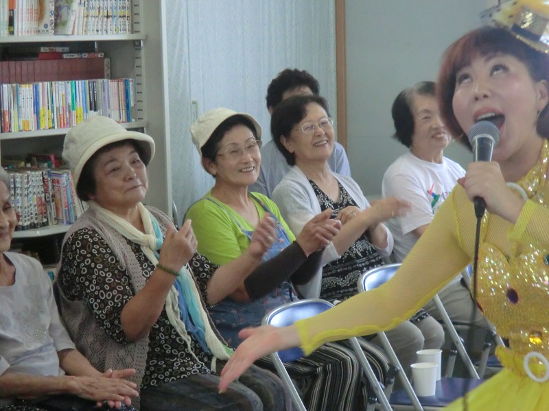 歌を聞くだけで無く、手拍子や掛け声、振付を一緒にする事で、自然と大きな声を出したり、体を動かしたり、大声で笑い、中には笑い泣きをする方も見られました。