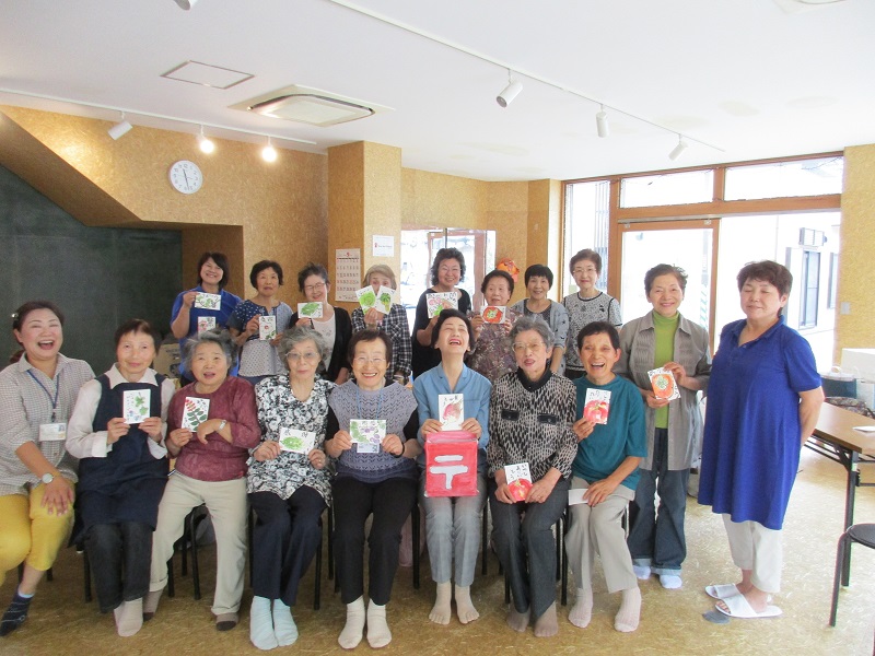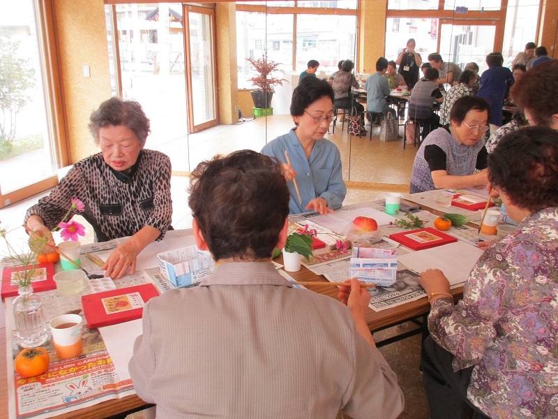 会場となっている仮設復興商店街「紫市場」は復興工事の関係から来春で営業を終える事が決まり、隔月で開催していた「南町Cadocco絵手がみ教室」も来年の1月で終了となります。講師の先生から「あと3回となりますが、最後まで楽しみましょう」と伝えられると皆さん大きく頷いていました。