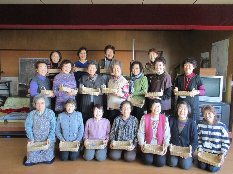 西みなと・西八幡町公会堂にて鹿折「グランマの会」オーバルカゴ製作に伺いました。参加者は1日目17名、2日目16名の参加がありました。社協職員も講師をしながら一緒に悪戦苦闘しながらも夢中で作成しました。仲間との歓談しながら完成した籠を見せ合い嬉しそうに「まあ、こんなもんだねぇ。なに入れすぺねぇ」と満足の様子でした。またお手伝いさせてください。